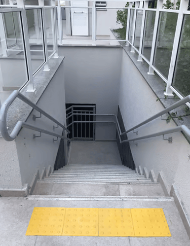 Além de adequação do ambiente com instalação de placas de braile nos corrimãos, entrada de elevadores, sinalizadores de degraus fotoluminescente nas escadas de emergência, O piso tátil de alerta e piso direcional é a solução mais comum usado em empresas, comércio, indústria, condomínios e locais de locomoção de pessoas. Comumente usados em situações civis e calçadas, estações rodoviárias, estações de trem, metrô e ferroviárias, etc.